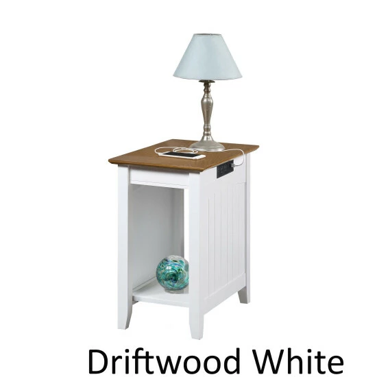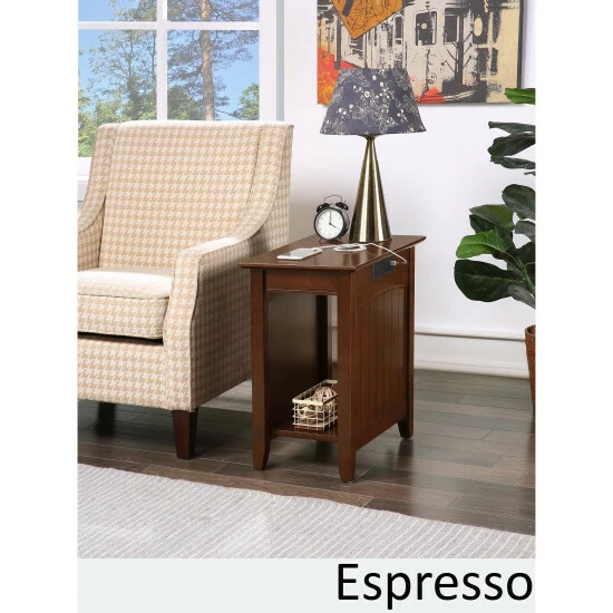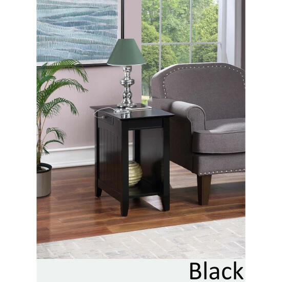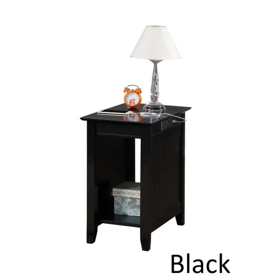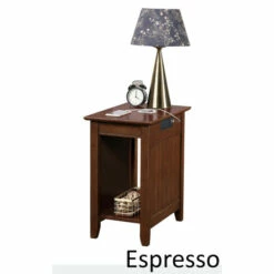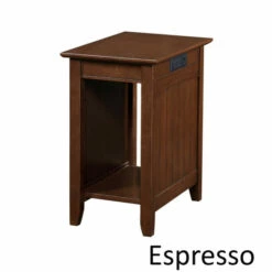 Bring the style and functionality of the Copper Grove Addison End Table with Charging Station, home today! Featuring an exposed built-in charging station for easy accessibility. The charging station includes two standard outlets and two USB ports which can easily charge your phone, tablet and even your laptop. The versatility of the exposed built-in station allows for multiple devices to sit on the tabletop without the damaging or twisting of cords. The power supply cord is 6 feet in length giving you the room you need to display your end table where you choose. Includes a bottom shelf great for books, display or additional storage.