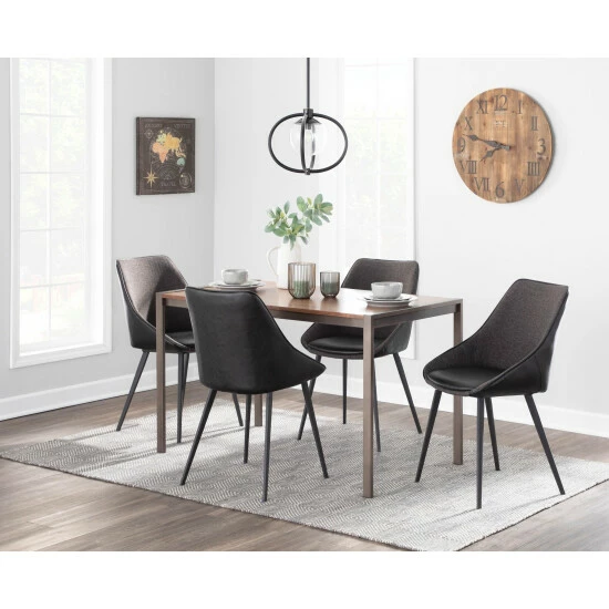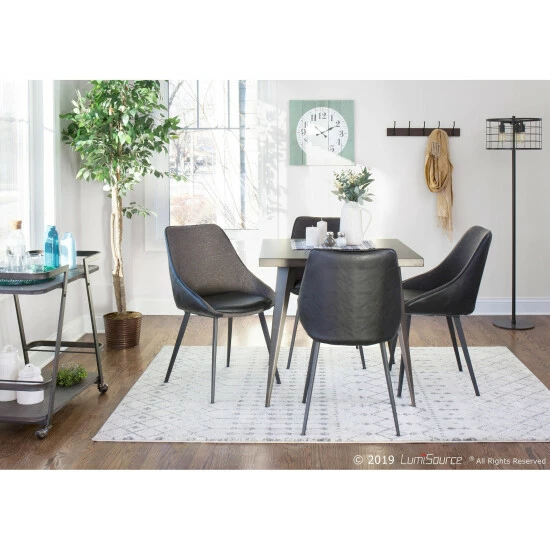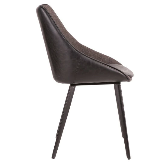 This two-tone chair is the perfect update for stylish seating in your dining area, living room, or home office. Exuding style and elegance with a fully upholstered frame and sleek black metal legs. Available in a variety of colors, choose the one that suits your area the best.