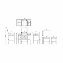 - Includes 1 vanity table, 1 coordinating vanity stool, and 1 coordinating vanity mirror