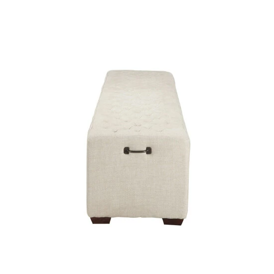 - Upholstered bench wrapped in natural beige linen