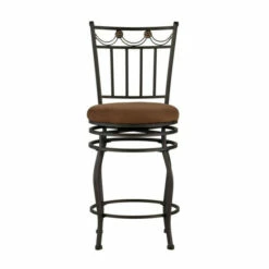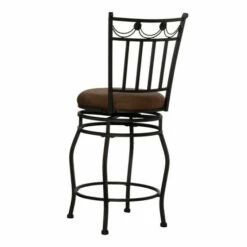 The elegance and unique style of this 24″ Swag Counter Stool will carry throughout your kitchen, dining, or home pub area. Crafted of metal and highlighted with subtle curves and a distinctive back, this stool is a positively striking addition to your home. The cushion is piled high for extra comfort and covered in a brown fabric. This stool is elegant and versatile making it the perfect choice for any gathering area.