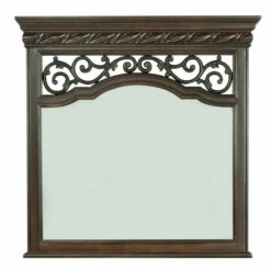 Add a statement to your room with the Arbor Place landscape mirror. This piece features gorgeous burnished brass scrolled metal inserts, unique rope twist moldings, and beveled glass that effortlessly frames the mirror, whilst adding dimension.