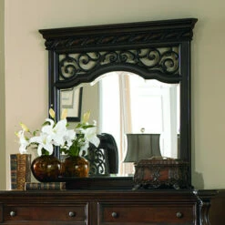 Add a statement to your room with the Arbor Place landscape mirror. This piece features gorgeous burnished brass scrolled metal inserts, unique rope twist moldings, and beveled glass that effortlessly frames the mirror, whilst adding dimension.