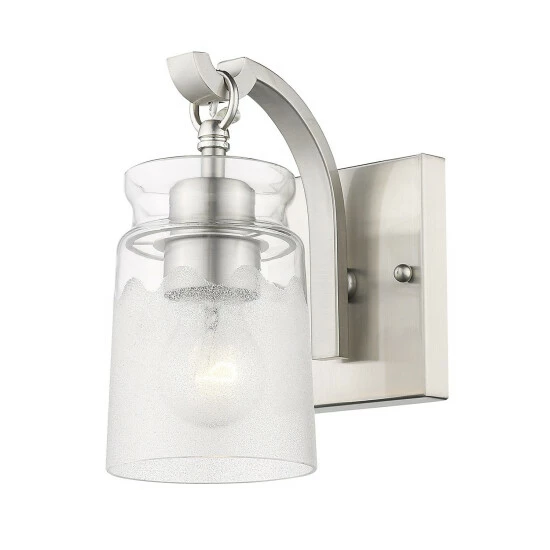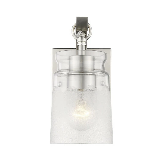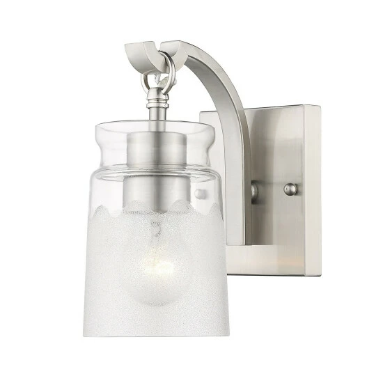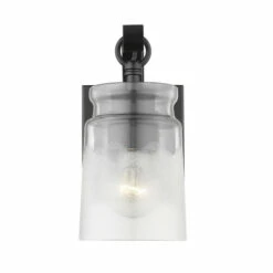 Nostalgic for a bygone era, this collection may have a simple form, but it creates dramatic style. The rustic, industrial inspired design features simple lamps enclosed in clear frosted artisan glass. The frosted glass is complemented by a smooth, hand-painted black finish. Glass shades house medium base bulbs offering an ample supply of light. These transitional fixtures work well with a variety of decors. Designed for use in bathrooms, this 1-light bath vanity fixture is damp rated.