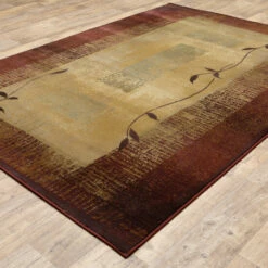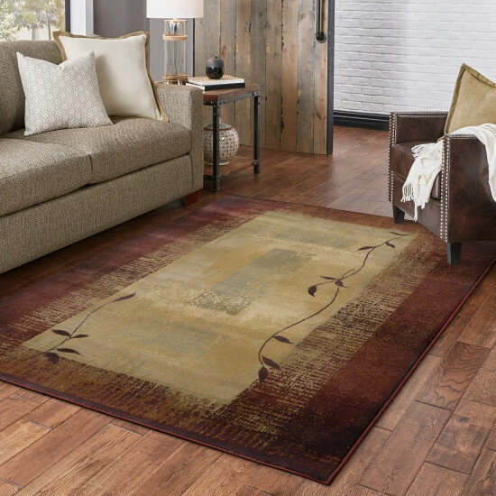 This Aspromonte red bordered round area rug from Copper Grove features a beautiful geometric, contemporary pattern in green, beige, red, and gold colors and is woven from 100-percent polypropylene. This area rug will help you to introduce an element of calm and subtlety into your bedroom or living room.
