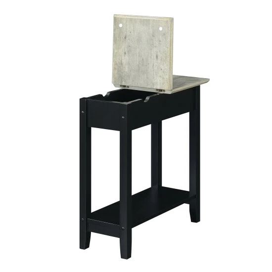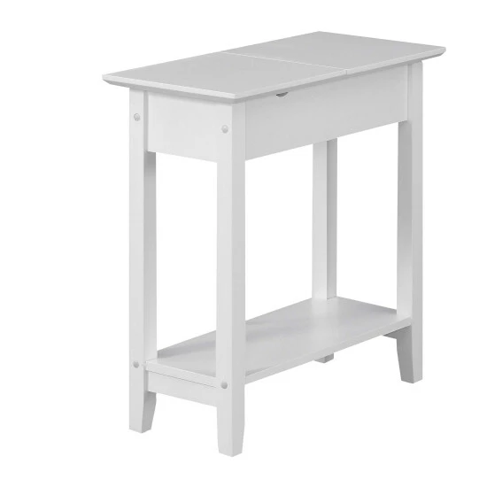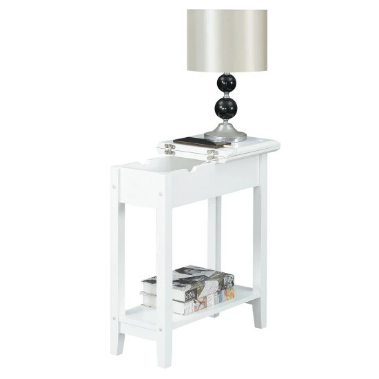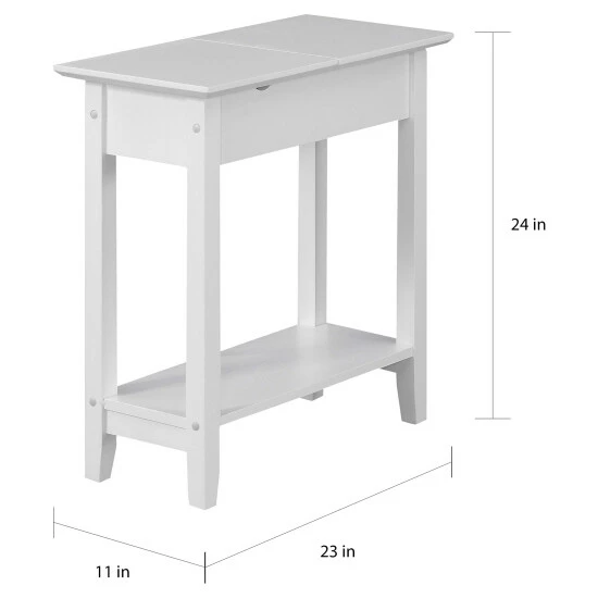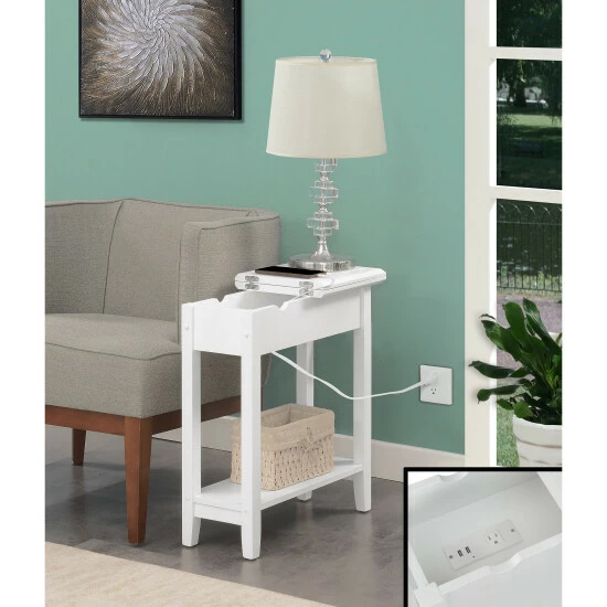 Upgrade your space with the style and functionality of the Copper Grove Aubrieta Flip Top End Table with Charging Station. This narrow silhouette features a flip top that reveals a convenient charging station and storage space for your remote controls or favorite book. The charging station includes one standard outlet plug and two USB ports which can charge your phone, tablet and even your laptop. Also included is a cable management hole, allowing you to store multiple devices without damaging the cords. The power supply cord is 6 feet in length giving you the flexibility needed to display your end table.Β