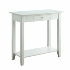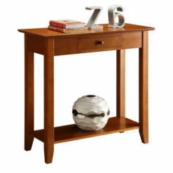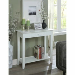 Complete your stylish home look with the charming Copper Grove Aubrieta Single Drawer Hall Table. Simple yet traditional, this table is perfect to style in a hallway, entryway, or anywhere needing additional storage and display space. Two tiers of spacious shelving offer plenty of room for storage baskets, decorative pieces, and much more. For easy access, store daily accessories such as car keys or a wallet in the convenient drawer. This quality table is built to last with solid pine legs and a tabletop finished in detailed birch veneer.