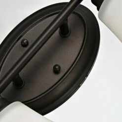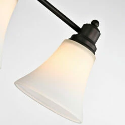 - Flared, conical, etched white glass shades