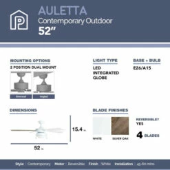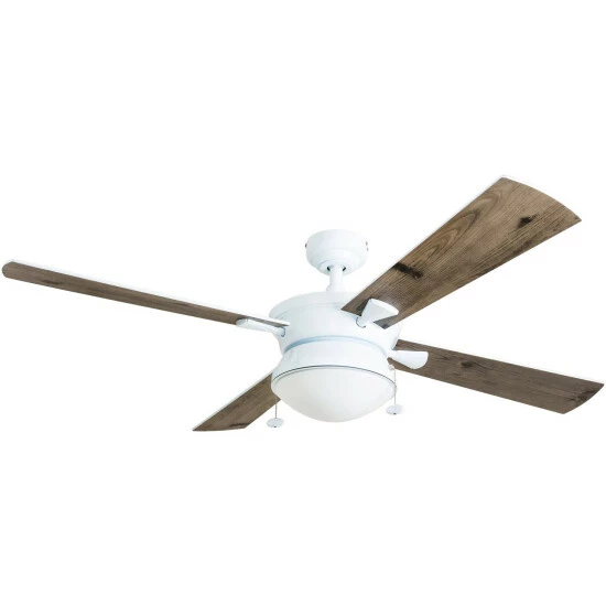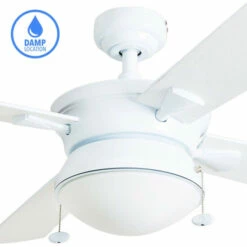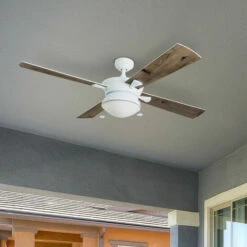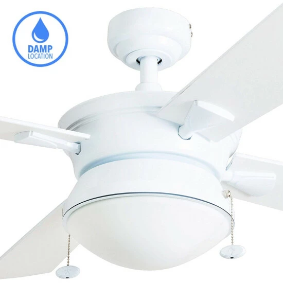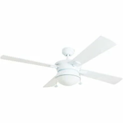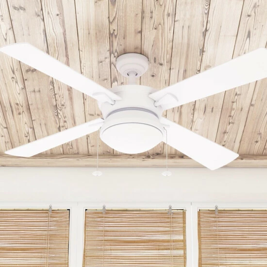 Enjoy comfortable air flow while you’re relaxing outdoors with this outdoor four-blade ceiling fan. Bright white waterproof blades give the fan a contemporary look, while the frosted LED light fixture brightens up your space in an energy-efficient manner.