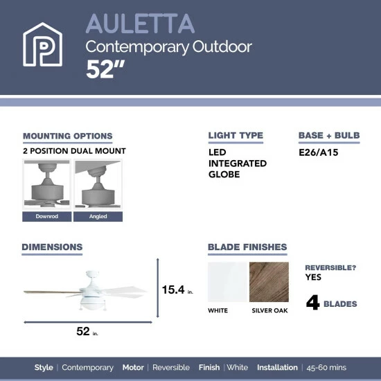 - Product Features: Reversible Blade, Reversible Motor, Sloped Ceiling Adaptable