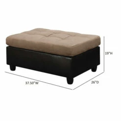Add warmth, comfort, and style to your living area with this Azalea ottoman from Copper Grove. The rectangular ottoman features a cushion top, upholstered in textured velvet available in dark chocolate, chocolate, or tan, and embellished with biscuit tufting. The base is upholstered in leather-like vinyl, and raised over simple feet, completing the timeless appeal of this trendy ottoman.