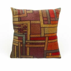 Upgrade your traditional sofa with this textured accent pillow. Made from 100-percent polyester, the lively cover features a geometric print in shades of brown, red and orange. Pair this plush piece with a brown leather couch or recliner for an updated look.