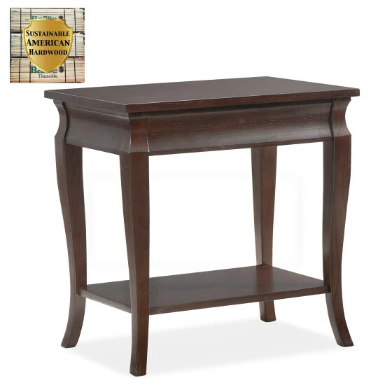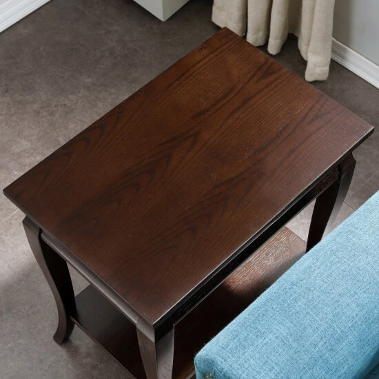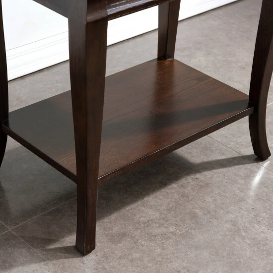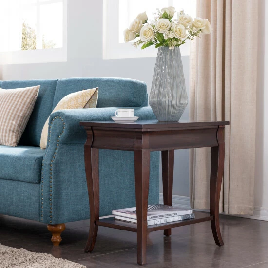 Expand the surface area of your living room by tucking this cute end table in a corner or next to your favorite seating spot. Gently curved cabriole legs help lend the table a bit of extra visual interest, and a lower shelf gives you a good space to place magazines or small plants. A hand-rubbed finish creates a classic look that completes the table’s traditional appeal. The narrow profile makes this piece a good choice for smaller rooms or tightly packed apartments.