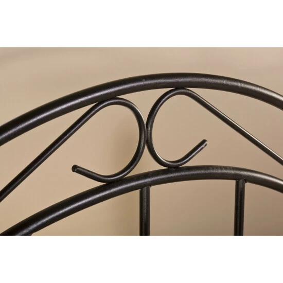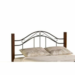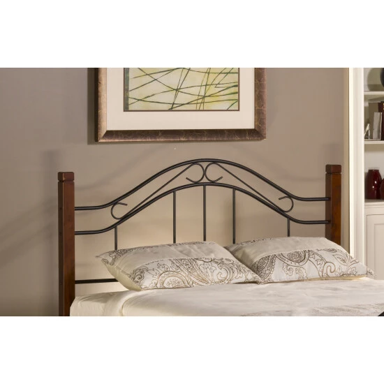 This bed offers the exceptional style of artistic design, with an even more exceptional price to match. It boasts whimsically curving accents in a mixed media package including solid hardwood, cherry-finished posts and elegant black metal work features on the headboard. Available in Twin, Full/Queen and King sizes. Headboard and rails only, does NOT include footboard.