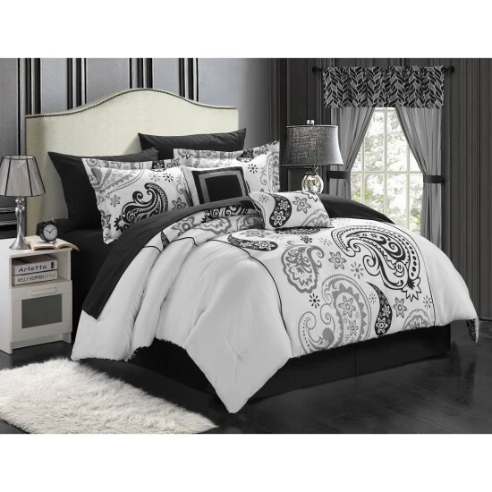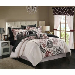 Enliven your bedroom with the Balmoral Bed in a Bag Set by Copper Grove. This funky set comes in three colors and features a paisley print on the top side and can be reversed to reveal a geometric print. Accent your new comforter with the included decorative pillows and curtains.
