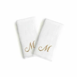Personalize your bathroom with these Copper Grove hand towels. These long-lasting towels features white cotton fabric with embroidered gold initial of your choice. These towels will become softer with every wash. Soft and thick, these towels will be charming touch to any bathroom decor.