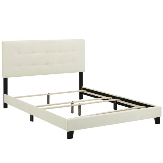 This bed comes with a stain-resistant velvet fabric upholstered base, timeless button-tufted headboard, and wood bed frame and legs, with non-marking foot caps. Complete with a reinforced center beam for maximum stability, this accommodates memory foam, spring, latex, and hybrid mattresses. A sleek and sophisticated centerpiece to the master bedroom or guest suite, this modern bed effortlessly transforms your bedroom decor with its luxe look.