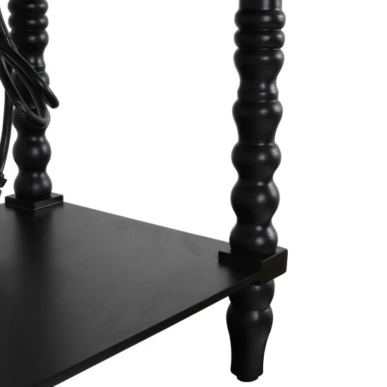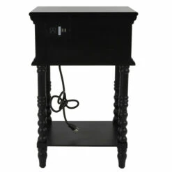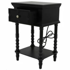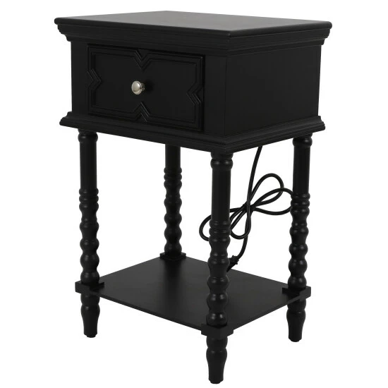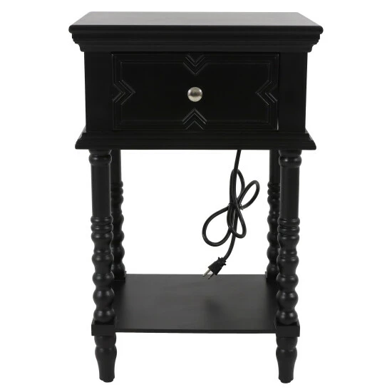 Create extra space to store your nighttime reading and family portraits with this one-drawer nightstand. Constructed with high-quality veneer for sturdiness and durability, this nightstand showcases an elegant antique finish that adds visual and textural appeal to your space. The contemporary geometric accents on the drawer contrast the traditionally carved legs to ensure that this nightstand blends with a variety of decor styles. The lower shelf provides an open space to display small house plants or other decor items.
