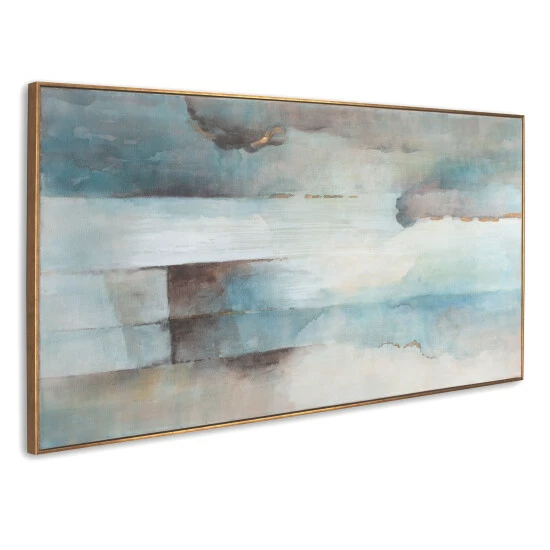 Accented by a gorgeous goldtone floater frame, this artwork is the perfect size for over your bed or sofa. This hand painted abstract piece brings neutral, yet playfully warm tones to your space and is accented with gold foil, for a lovely touch of modern sass.
