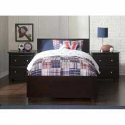 A low-profile headboard is just the beginning of the modern feel conveyed by this bed, the perfect new pop of personal pizzazz in your droll bedroom sanctuary. This inviting, cozy, well-built bed is pleasing to the eye with a sleek, open design that fits into all size spaces, all while its sultry espresso finish simply oozes winsome