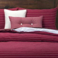 Add a new dynamic of texture to your bedroom with this duvet cover set from Copper Grove. Constructed of cotton burlap, this brick duvet set has a textured weave accented by delicate white stripes to add contrast and a classic farmhouse feel.Β