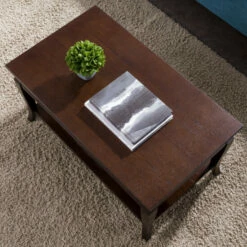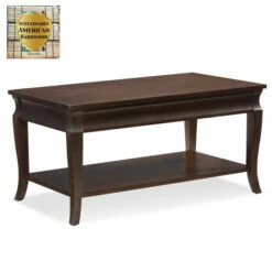 Embellish your condo or apartment with this compact coffee table. Available in hand-rubbed grey or chocolate oak finishes for a distinguished look, this table boasts a protective topcoat that protects the finish from scratches. With a concave crescent profile and cabriole legs, this table adds traditional elegance to your space. Made from solid wood for long-lasting endurance, this table comes with hardware so you can put it together yourself. A lower shelf is included to provide extra storage for small items such as books.
