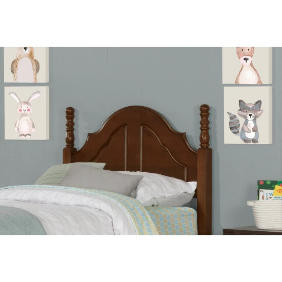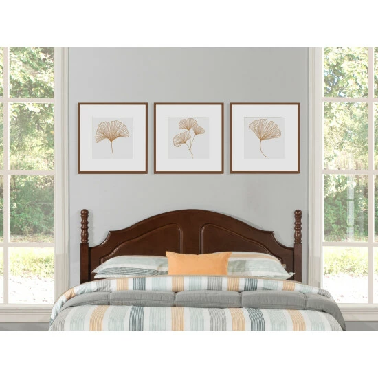 Stately and dignified. The Copper Grove Bordeaux Headboard features handsome turned posts with round finials and a recessed dual-paneled headboard. A modified camelback design graces the top — with inverted arched corners to add visual interest and movement. Finished in a rich Cherry. Add decorum to your dΓ©cor with the Cheryl Headboard. Includes headboard only; bed frame sold separately. Box spring and mattress not included. Available in Twin and Full/Queen sizes. Assembly required.
