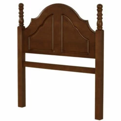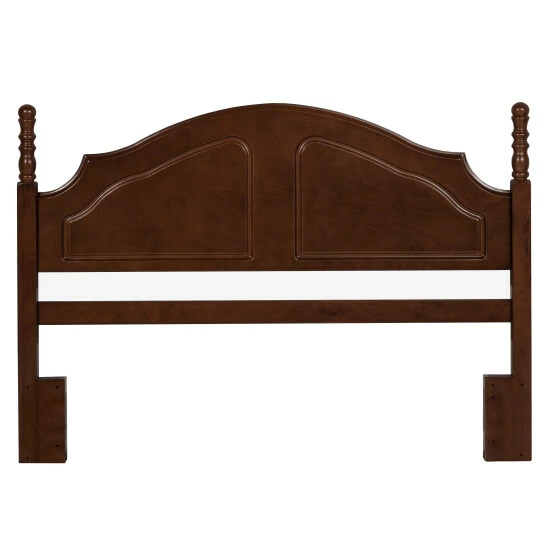- Traditional wood headboard with decorative posts with round finials framing the perfectly arched design; Headboard only