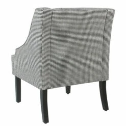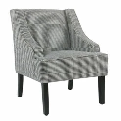 We combined classics to create a handsome accent for any room in your home. We started with our traditional swoop arm frame, upholstered it with a rich ebony houndstooth fabric, and completed the look with black finished wood legs. All together, these elements register as a rich and powerful statement for your living room, bedroom, office, or entryway. Use a singular accent or pair two together for an even bolder look. Easy assembly required. Spot clean.
