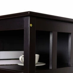 This is our stylish white kitchen storage cabinet. Fashion, usability, and good quality make this eye-catching kitchen cabinet a wise addition to your home. It features a big two doors storage cabinet and an open shelf for daily necessities, a wide desktop for fruits, cups or other decorations. Don’t hesitate to buy it!