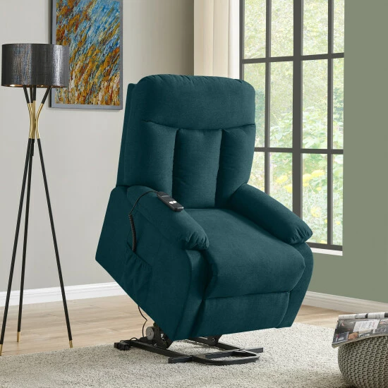 This power lift recliner chair is covered in a choice of fabrics and makes getting out of your seat a breeze with the included wired power control. Great for the elderly or people with mobility issues, this chair provides reclining comfort and lift support with the included wired power control that only requires 2 buttons for lifting or reclining by simply holding the button until your desired position and comfort level are reached. The wall hugger design is ideal for smaller spaces and only requires 4 inches of clearance from the wall.