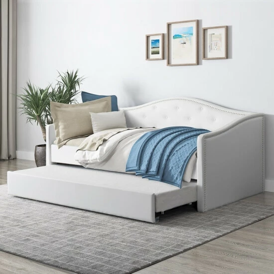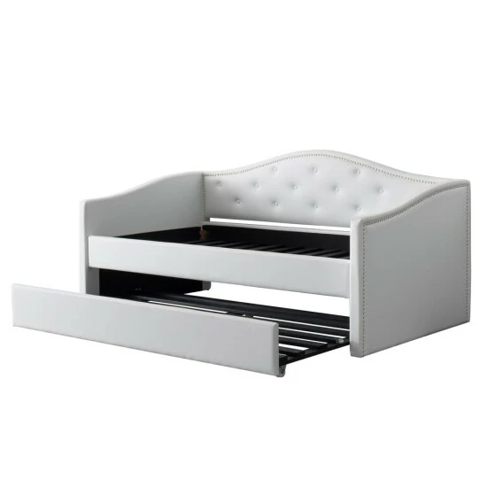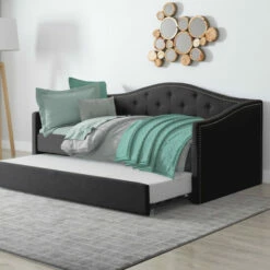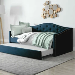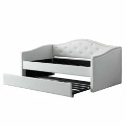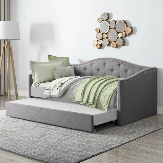 Accommodate overnight guests in luxury with this pretty daybed and trundle set. This daybed features a classic silhouette with a tufted backboard and nailhead trim, adding a timeless look to your room. Pull out the trundle to provide a comfortable sleeping area for sleepover guests or visiting relatives.