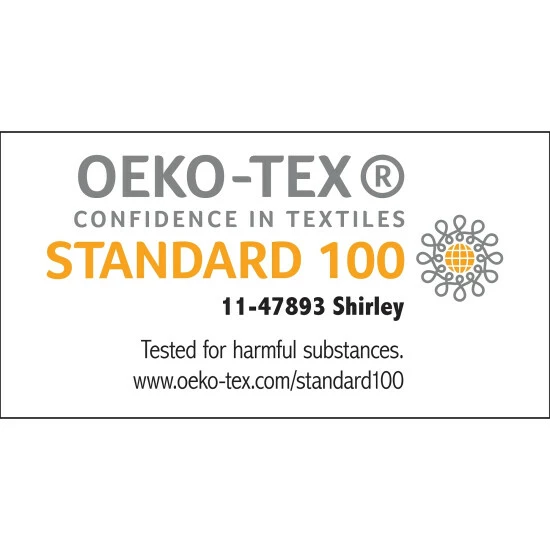 - Oeko-Tex Certified, includes no harmful substances or chemicals (# 11-47893)