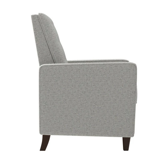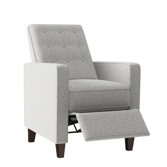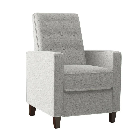 This updated classic reclining chair features sqaured arms and a button tufted back cushion design that is not only comfortable but beautiful as well. Simply push back to recline, no levers or handles required for comfortable long term sitting, TV viewing or just a relaxed recline.