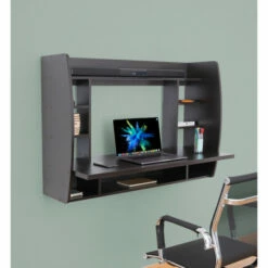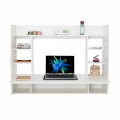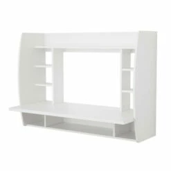Create the perfect desk area with this wall mounted laptop desk. Plenty of shelves provides extra surface space to store office items and trinket display. Composed out of durable wood, this desk offers a sturdy base to hold office essentials neat and organized. Practical working spaces start with this wall mounted desk.