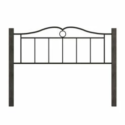 Capture a cozy contemporary cabin feel in your master bedroom with this headboard. Double arches highlight this headboard, drawing attention to the sturdy metal design, and spindles below the arches give this headboard an ornate look without making it too busy. The brushed charcoal wood posts create a sturdy support system for the black metal headboard while providing color and material contrast to improve the look. This headboard mounts easily onto your existing bed frame, letting you quickly update your bedroom look.