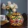 Since these are hand crafted products, the exact color of glass pieces may vary. Colors of the glass will appear darker and less vibrant when not illuminated. Handmade glass will vary from one piece to the other; glass made at different times will also vary. Light bulbs used in lamps or ambient lighting may affect the appearance of the products.