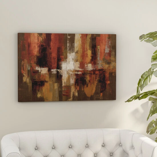 Highlighting warm hues like red and brown, this abstract canvas makes a stunning statement. Ideal for large spaces, this piece will tastefully complement your contemporary decor.
