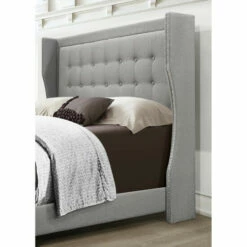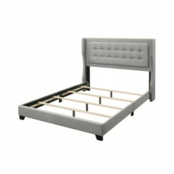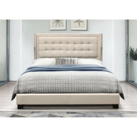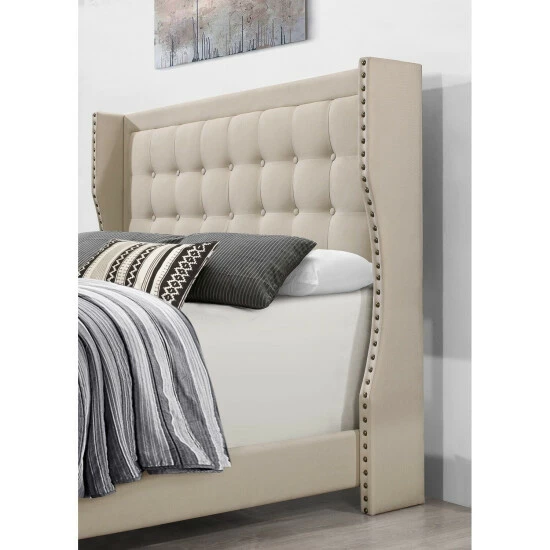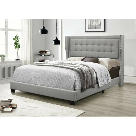 Give your bedroom a stunning centerpiece with this nailhead-trim-accented panel bed. Featuring an upholstered, tufted headboard and sleek, modern lines, this durable, wood-frame bed transforms your room charmingly.