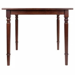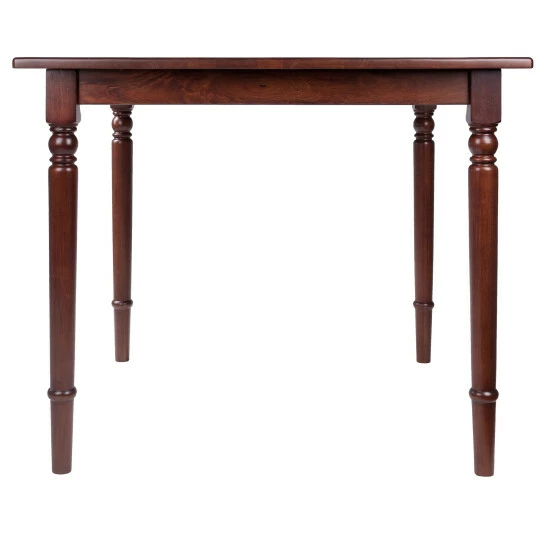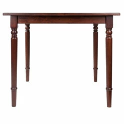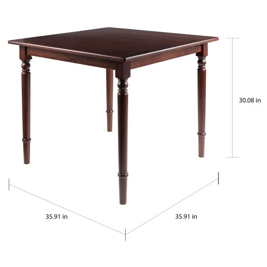 The elegantly turned legs and smooth rounded corners of this table call up memories of warm family dinners around the country dining table. And at 35″ square, this Solid Wood table will bring that touch of American farmhouse to your apartment or kitchen dining nook. With its extra detailing, full aprons, and gleaming Walnut finish, it’s perfect for hosting a special dinner for four. Dimensions: 30″H x 35.4″W x 35.4″D Distance between legs: 27.1″W (front and side) Clearance from ground to apron: 26.9″HAssembly requiredShips in 1 box