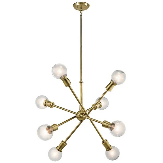 This 8-light chandelier from the features a natural brass finish that will complement many contemporary decors. The fully adjustable arms allow you to customize the light exactly the way you like. This piece includes 36 inches of chain and 53 inches of wire so it can be hung at your desired height. Dimensions: Up to 77 inches high x 30 inch diameter. Turn on our fixtures, and watch your room transform even more. From lighting to ceiling fans collections are built around our simple philosophy of bringing you the effect you want for your home or business. Our collections coonate from room-to-room, or let you mix and match from wall-to-ceiling. And each fixture is designed to deliver a stunning quality of light that makes your sp more beautiful and more livable. As one of the largest, privately held residential lighting fixture companies in North America, we’re constantly working to create innovative and on-trend decorative products as well as knowledgeable support. , we’ve been creating products that are not only well designed, but also practical. We invest millions of dollars each year in design, technology and testing to assure that we’re offering distributors, designers, installers and homeowners not only innovative technologies – but also fixtures that perform efficiently, install intuitively and deliver a premium source of light. This philosophy holds true for everything we create – from our wide variety of decorative fixtures to our award-winning landscape lighting to our ceiling fans.