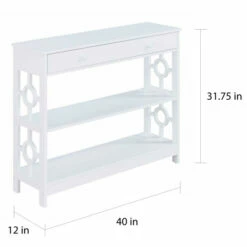 Add this three-tier console table to your entryway or living room to display your favorite plants, books, and more. The top features one extra-large drawer, perfect for storing keys and other small belongings out of sight. Two open lower shelves and an open top surface provides ample space for extra storage and display.