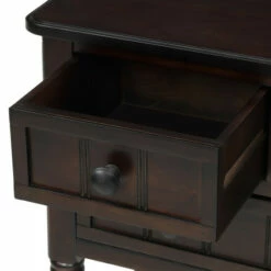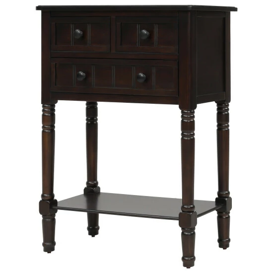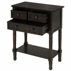 Enjoy the modern silhouette of this narrow console table, with three storage drawers and a bottom shelf constructed with a solid wood frame and legs with a beautiful distressed finish. It is ensured to be stable, strong and requires low maintenance through long years of use.