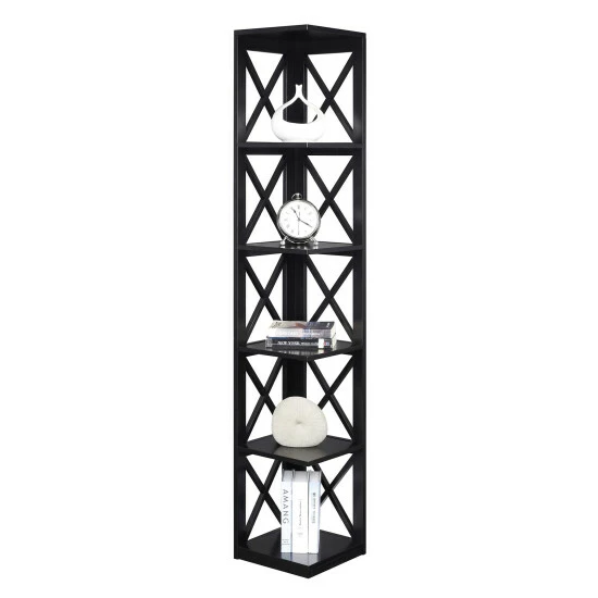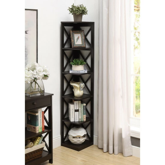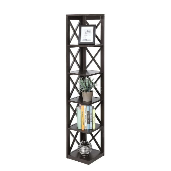 Organize and stylize in one fell swoop, with this compact corner bookcase. With its capacious five-tier design, this handsome piece serves as a practical storage for your various books, artworks, or decorations. A tasteful crossed ‘x’ design ensures this bookcase will definitely give a stylish touch to your living space.