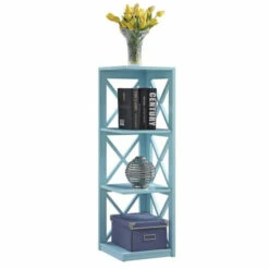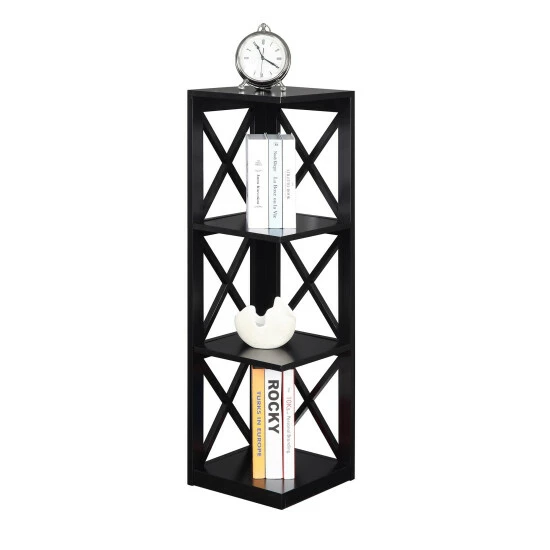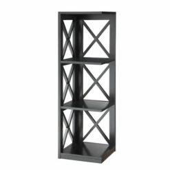 Add both function and style to an otherwise unused corner with the Copper Grove Cranesbill Wood 3-Tier Corner Bookcase. Featuring an open space that provides 3 spacious shelves for decoration collections art and books. Available in multiple finishes, with a simply elegant crossed X design this piece can transform any space into something truly beautiful. Crafted for durability this piece will quickly become a staple in your home.