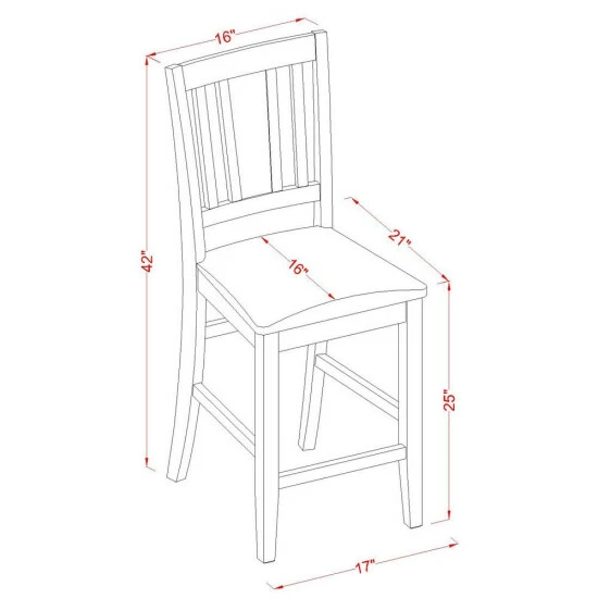 - Chair measures: Length: 21; Width: 17; Height: 42