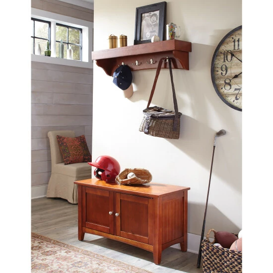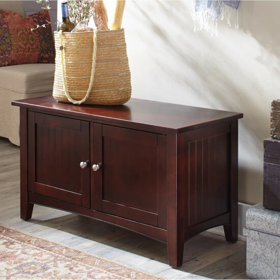 This two-door storage bench from features cabinets with two storage areas and is finished in beautiful cherry or espresso. Perfect in a mudroom, entryway or anywhere you need extra seating, this storage bench makes a beautiful addition to your home.