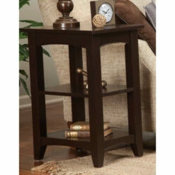 Use this Daintree end table from the Copper Grove collection to give your space a touch of dark, unpretentious sophistication. The Daintree end table has two shelves where you can keep your books, remotes, or anything else you need close at hand when you’re relaxing on your sofa, as well as a tabletop surface perfect for a table lamp.