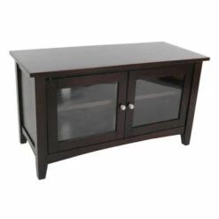 This Daintree wood TV stand from Copper Grove is the item you need for your living room or bedroom. The Daintree has two glass doors that conceal and adjustable shelf for media players, DVDs, and other items. You can order the Daintree in your choice of a rich cherry or dark espresso finish.Β