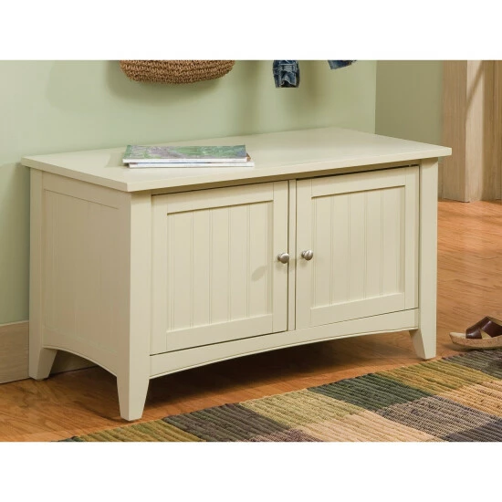 Place this Daintree storage cabinet bench in your entry way or hallway to help organize your things and keep your space free from clutter. The Daintree storage bench has two cabinet doors that conceal two storage areas and the outside is available in black, chocolate, or off-white colors.